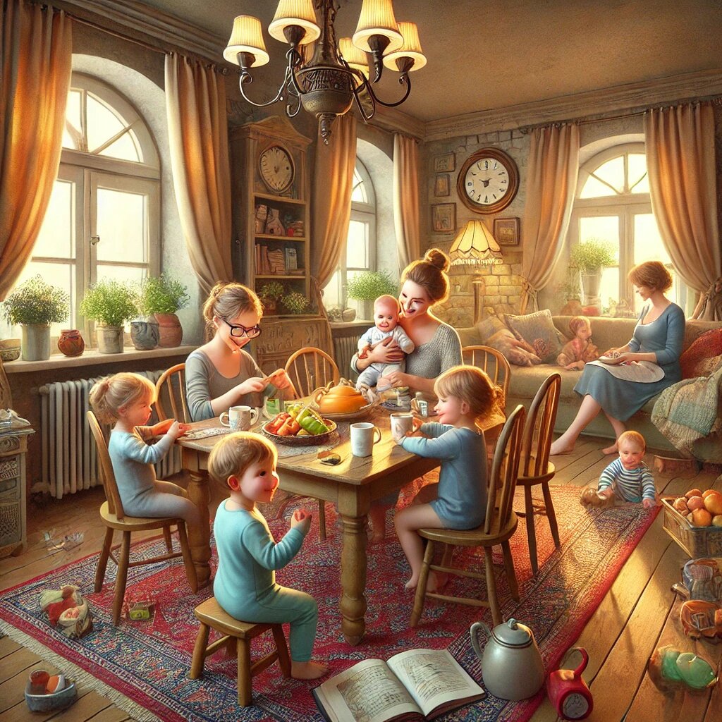 Дети, недовольные, разбрелись по разным углам, оставляя после себя поле боя: разорванные листы, крошки от печенья и брошенные игрушки. Елена прислонилась к стене, вытирая лоб.
