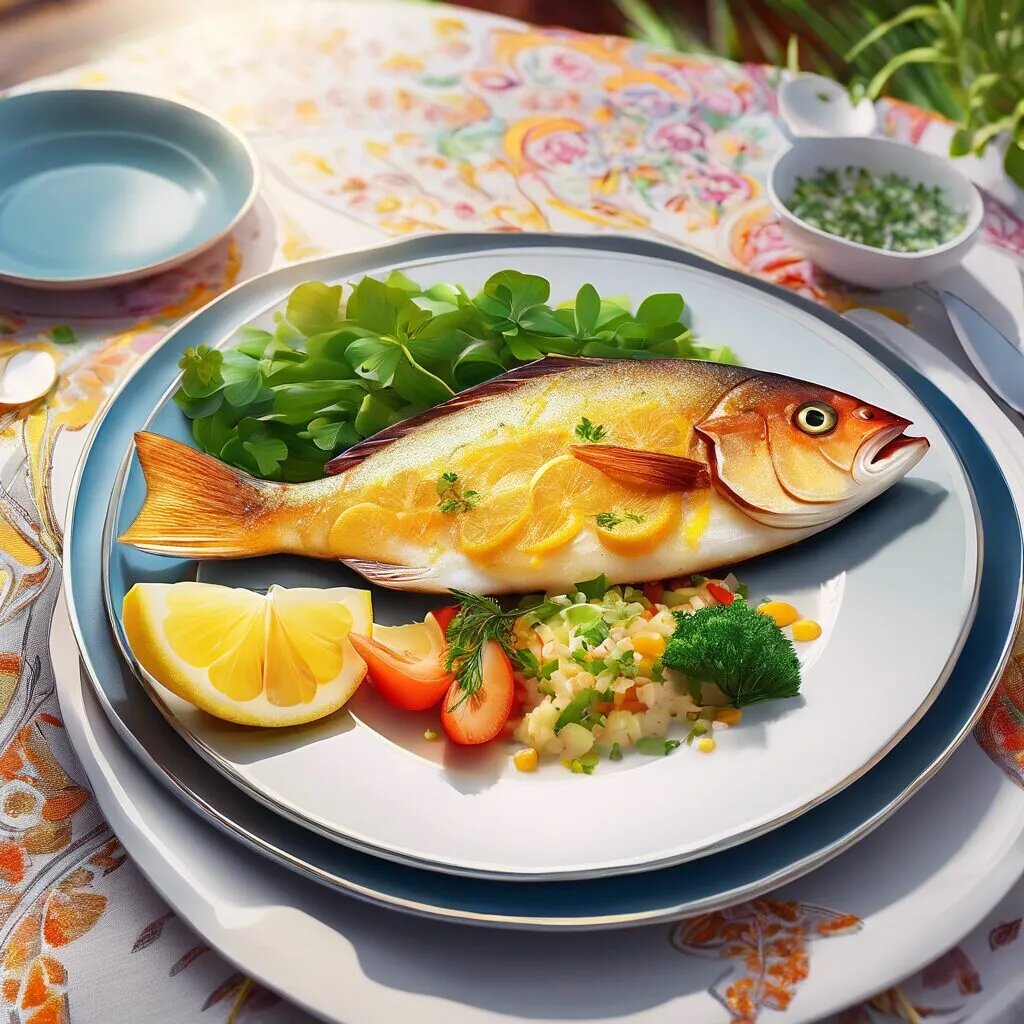 Ингредиенты: - 1 целая рыба (например, судак, треска или дорадо) — около 1–1,5 кг - 2 лимона - 3-4 зубчика чеснока - Свежий укроп или петрушка - Оливковое масло — 3-4 столовые ложки - Соль и черный перец по вкусу - Специи (например, тимьян, розмарин) — по желанию ### Приготовление: 1. **Подготовка рыбы:** Промойте рыбу под холодной водой и обсушите бумажным полотенцем. Убедитесь, что она очищена от чешуи и внутренностей. 2. **Приготовление маринада:** В небольшой миске смешайте оливковое масло, сок одного лимона, соль, черный перец и любые другие специи по вкусу. 3. **Нарезка лимона:** Нарежьте второй лимон на тонкие кружки. Чеснок нарежьте тонкими пластинками. 4. **Маринование:** Нафаршируйте рыбу лимонными кружками, чесноком и свежими травами. Затем обмажьте рыбу маринадом с обеих сторон. 5. **Запекание:** Разогрейте духовку до 180°C. Выложите рыбу на противень, застеленный пергаментной бумагой, и запекайте в течение 25-30 минут, в зависимости от размера рыбы. Готовность можно провер