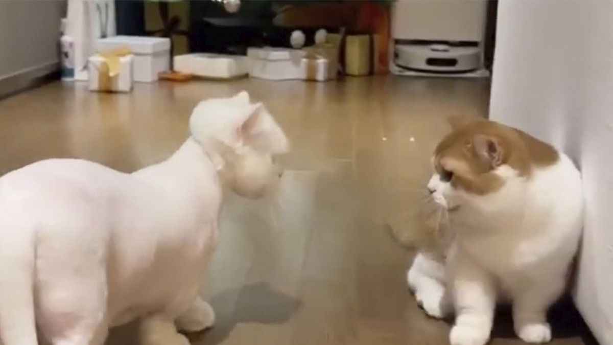 Кот не узнал брата после стрижки и устроил забавную сцену