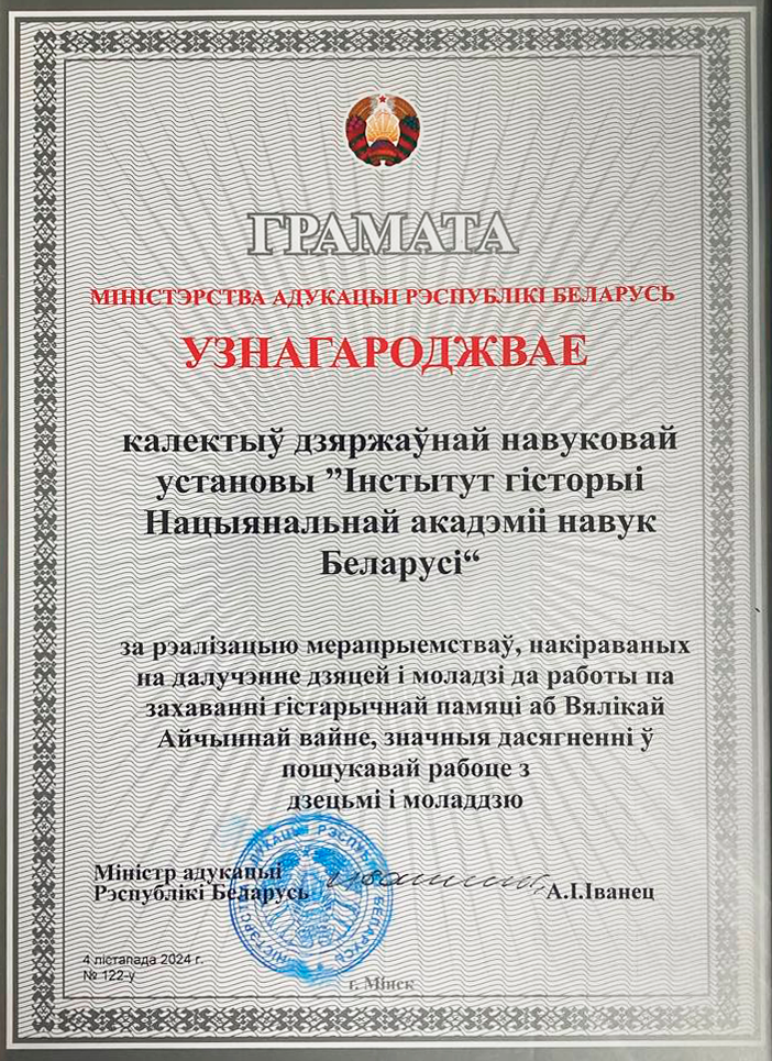 Грамата Міністэрства адукацыі Рэспублікі Беларусь