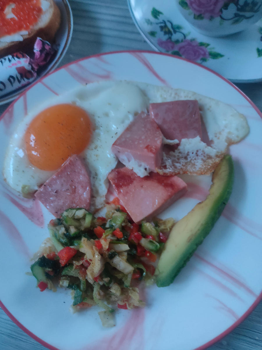 Здравствуйте, я рада снова приветствовать Вас на своем канале. Меня зовут Надежда и мне очень приятно, что Вы со мной, на моем канале «Быстрая кухня: рецепты на каждый день», где показываю наше меню на день. Почти уже неделя пролетела праздничных дней, а промчались как один день. А все потому, что встаю поздно. Сегодня заставила себя встать пораньше, побольше и сделала. На улице совсем не зимняя погода, чуть ниже нуля. Снег рыхлый, словно уже весна. От зимы остался снег и пасмурная погода. Солнца нет и нет. Уже в начале четвертого включаем свет, в доме сумерки. Но вернемся к утру. Готовлю завтрак. Завтрак: глазунья с вареной колбасой, овощами и ломтиком авокадо, а также кофе, но сегодня у меня растворимый, надо опять молоть, к кофе сделала бутерброд с маслом, красной икрой и форелью, а еще шоколадная конфета Чио Рио очень у меня получилась вкусная икра, а все потому, что горбуша оказалась довольно свежей, покупала ее в упаковке. После завтрака все приготовила к обеду: почистила и поре