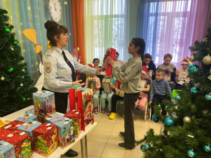 В Гусь-Хрустальном районе Владимирской области в рамках ежегодной акции «Полицейский Дед Мороз» сотрудники местной полиции совместно с общественниками организовали ряд праздничных мероприятий для детей. Фото Управления МВД России по Владимирской области Главным событием стало поздравление воспитанников социального реабилитационного центра в поселке Уршельский. Представители закона и «Полицейский Дед Мороз» пожелали ребятам весёлых и безопасных зимних каникул. Дети подготовили для гостей стихи и песни, водили хороводы, играли и отгадывали загадки. За свои старания юные участники получили сладкие подарки и игрушки. – Подобные благотворительные акции стали доброй традицией для полиции и общественников, – отметил представитель Общественного совета при МО МВД России Игорь Новиков. – Они помогают воспитывать у детей доброжелательность, законопослушность, а также формируют доверительное отношение к полицейским. Более того, сюрпризом для самих полицейских стало поздравление от активистов «Движ