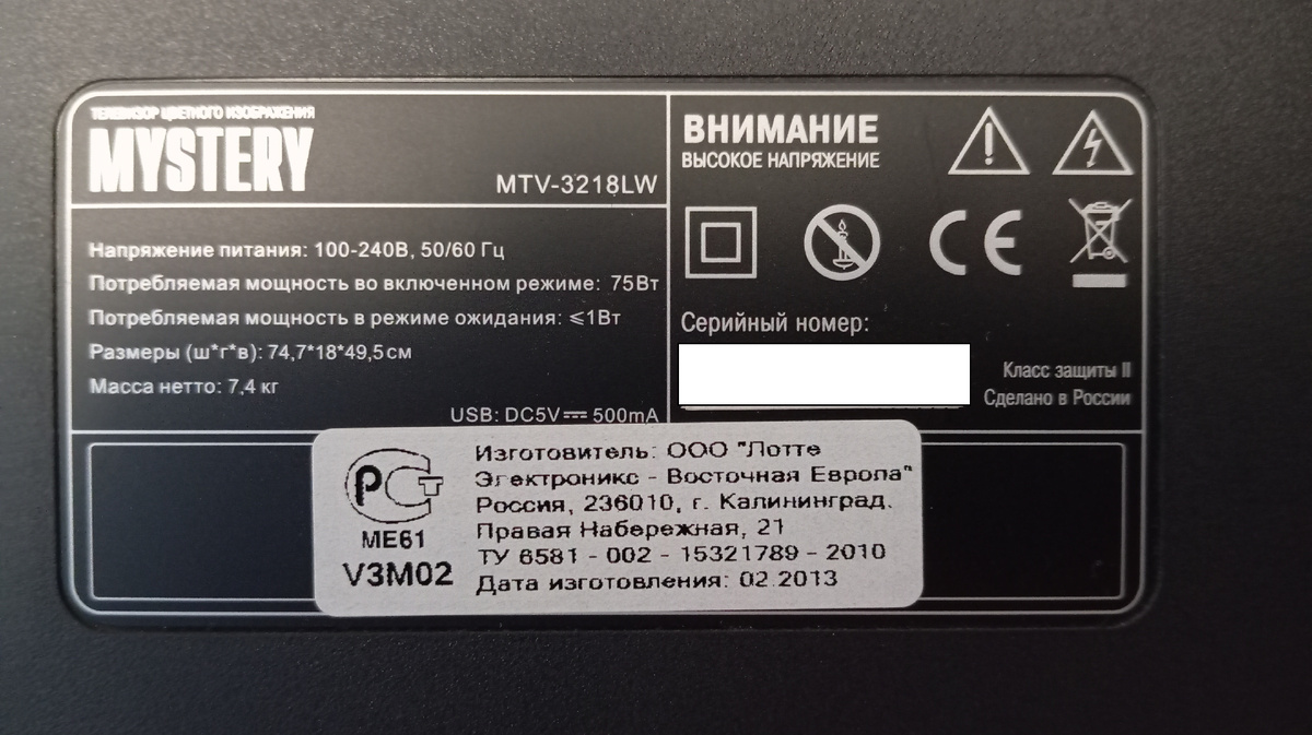 ТВ MYSTERY MTV-3218LW. Подсветка моргает, изображения не видно.