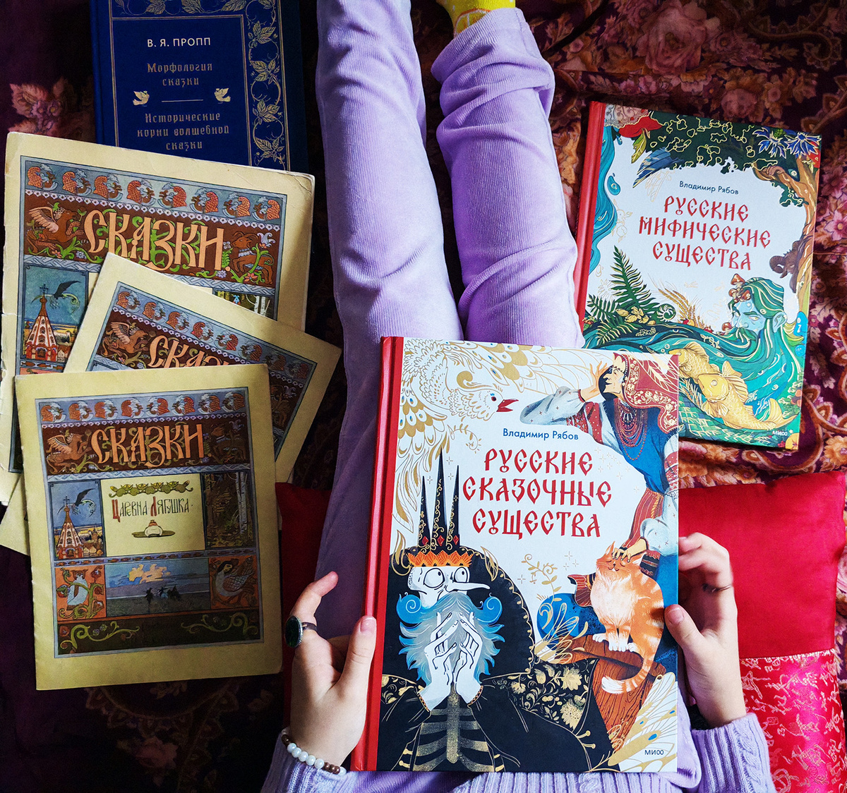 В нашей домашней библиотеке — вторая книга издательства МИФ и Владимира Рябова «Русские сказочные существа». Первая была «Русские мифические существа», она оставила скорее неприятные ощущения и читала я ее одна, хотя обычно мы изучаем такие книги с дочкой. Владимир Рябов — филолог, фольклорист и психолог. К сожалению, последнее никак не отражено в этой книге, что очень жаль. Совсем недавно я читала книгу МИФа и Лизы Марчиано «Дарующая жизнь. Женские архетипы в материнстве: от Деметры и Персефоны до Бабы-яги и Василисы прекрасной», и мне было жутко интересно прочитать про русских сказочных персонажей с хоть каким-то учетом психологии. Увы, надежда не оправдалась. «Русские сказочные существа» я читала с дочкой почти 9-ти лет. В целом, мы много читаем сказки и мифы, поэтому «разрубил на части и сварил» ее не очень пугает, хотя такие неприятные моменты в книге присутствуют в достаточном количестве, и надо понимать особенности своего ребенка, если вы будите им это читать. Издательством книг