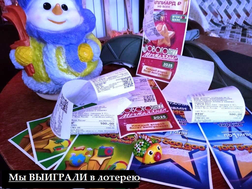 Так вот. Мы с мужем на свои 3 билета не выиграли ничего. А старший и младший сын выиграли по 100 рублей каждый.