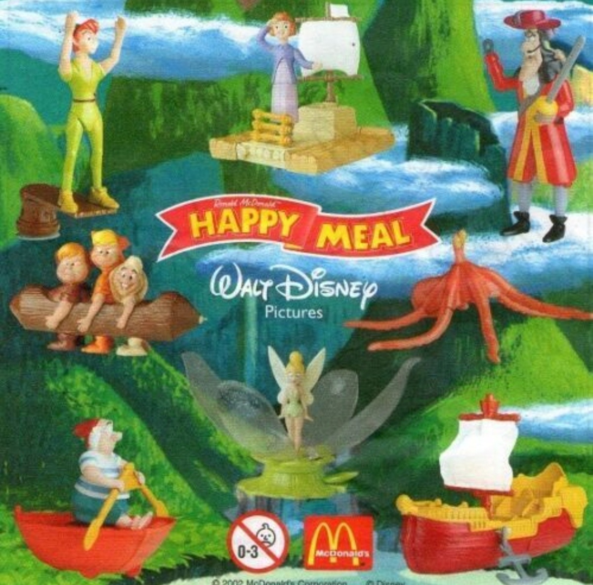 В серии Peter Pan 2002 из McDonald's 8 персонажей одноименного мультфильма. Прекрасный диснеевский мультфильм. Даже не хочется ничего писать. Просто посмотрите этот мультик ! В моей коллекции есть следующие игрушки из этой серии : Если интересуют другие игрушки из McDonald's , то переходим на Главную страницу