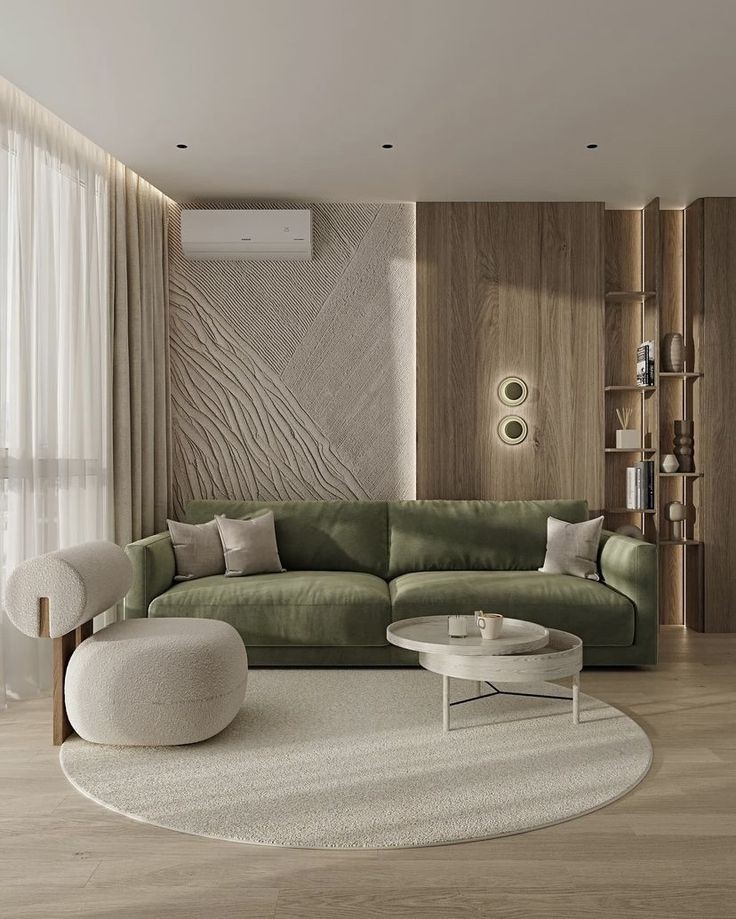 Эко-дизайн акцентирует внимание на использовании природных материалов и технологий, направленных на сохранение окружающей среды. В интерьере гостиной это может проявляться следующими способами:
