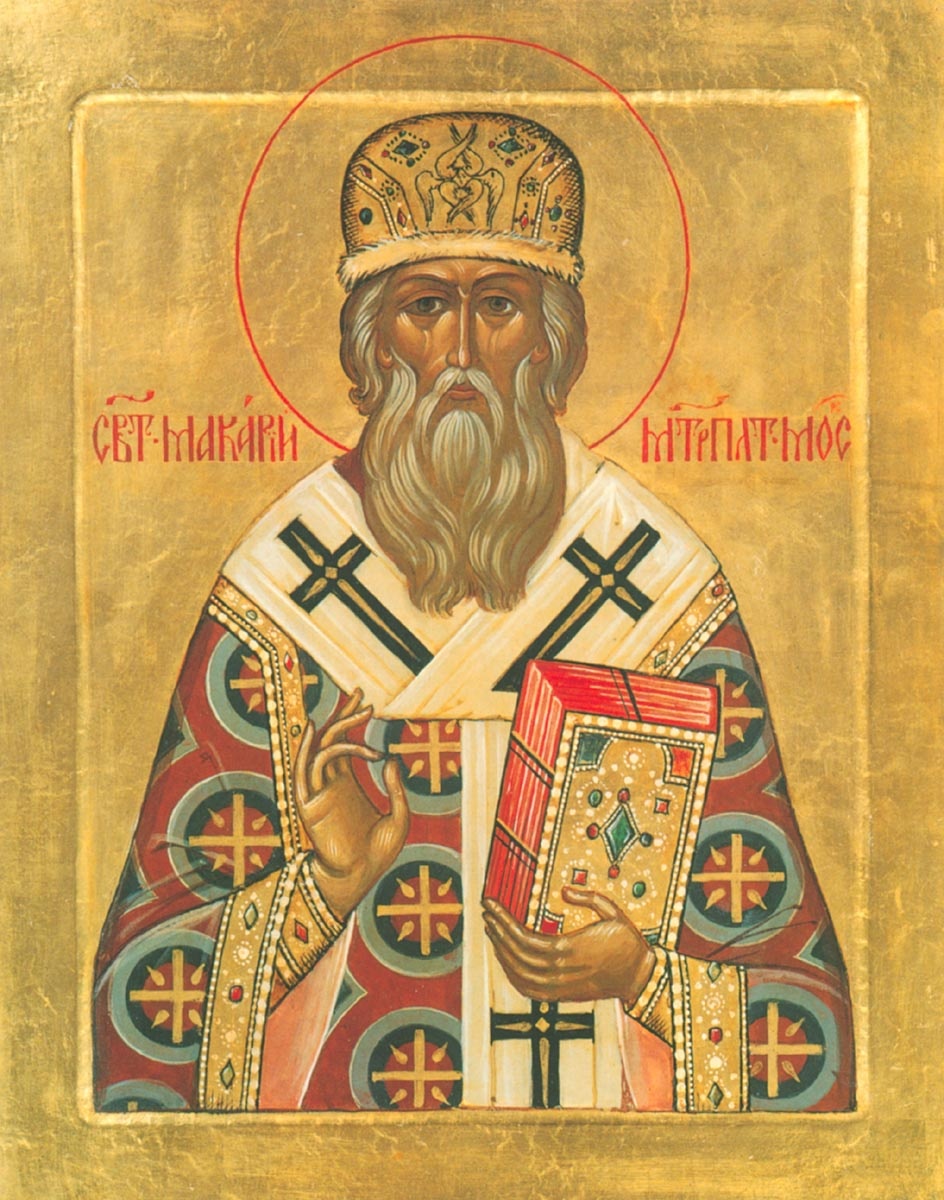 Митрополит Макарий, в миру Михаил, родился в 1482 году в Москве. Его родители были благочестивыми людьми, ему приходился дальним родственником Иосиф Волоцкий. Ещё юношей он поступает в монастырь преподобного Пафнутия Боровского и принимает постриг с именем Макарий. В 1523 году инока Макария посвящают в архимандрита Лужеского монастыря, а в 1526 году он становится архиепископом Великого Новгорода и Пскова. Владыка заботится о просвещении северных народов Новгородской земли. Кроме этого, при святители Макарии в Новгороде было построено около 40 храмов, множество храмов восстановлено после пожаров. Владыка очень заботился о своей пастве - он не делал различия между людьми бедными и богатыми. В 1542 году встал вопрос об избрании на Московскую кафедру нового митрополита и выбор пал на святителя Макария. В 1547 году в Москве состоялось царское венчание московского государя, которое совершил владыка Макарий. В 1552 году святитель благословил царя идти на Казань и предсказал ему победу. Святи