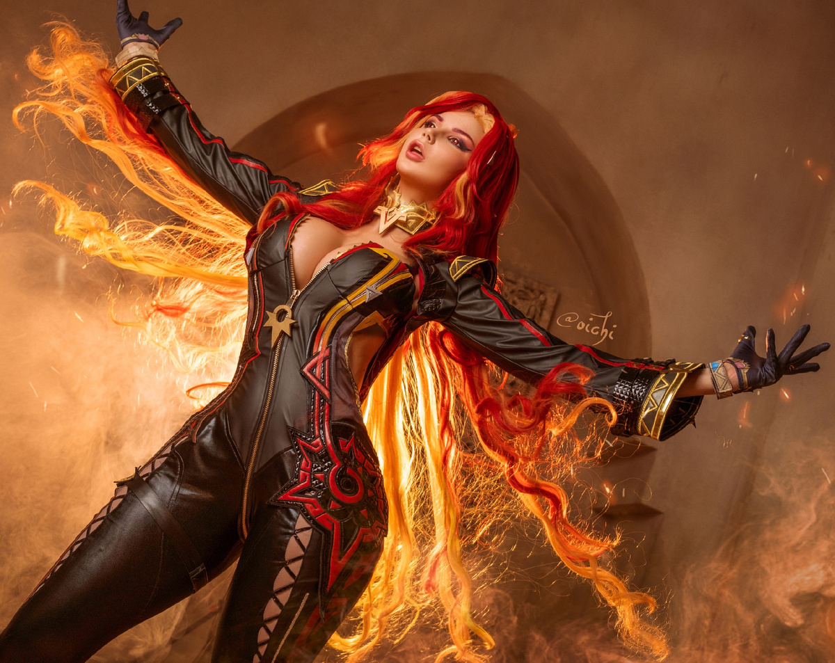 В этой статье Cybersport.Metaratings предлагает оценить этот шедевр. Костюм косплеерши полностью повторяет детали игрового дизайна: костюм, пылающие цвета и украшения, подчеркивающие статус Пиро-архонта. Уверенная игра Oichi и её выразительные позы передают как лёгкость характера героини, так и её грозную силу, способную отпугнуть любого врага.