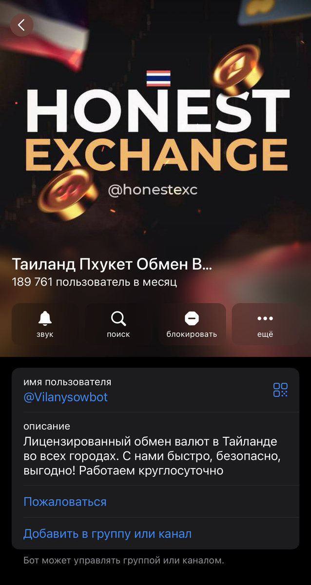Мошенники Honest Exchange Тайланд Пхукет. Отправившись в путешествие на Пхукет, столкнулся с проблемой, с которой сталкиваются все мои соотечественники, ввиду введенных санкций, а именно сложностями с наличными средствами за рубежом. Не долго думая нашел в телеграмм канале обменный пункт Honest Exchange Тайланд Пхукет, в котором обещали обменять все удаленно и выдать деньги в ближайшем банкомате по коду (обычная практика в Тайланде) Подкупало количество пользователей в месяц и куча отзывов (чужих). Написал в данный бот, но ждал ответа минут 15. «Менеджер» вышел на связь, предложил самый хороший курс 🤦♂️, но указал, что сумма должна быть точь точь как в заявке, я хотел обменять 1000USDT. Ну я и отправил USDT на этот кошелек: TU6jR5MNZ9ToKxCy2SQNSJFvAdHeTmoCHN Ну и тут выяснилось, что менеджер из-за высокой загруженности случайно оформил мою заявку на 500USDT больше и мне нужно доплатить. Тут я все и понял, схема стара как мир. Сказали, что раз не хотите оплачивать, мы все вернем, з