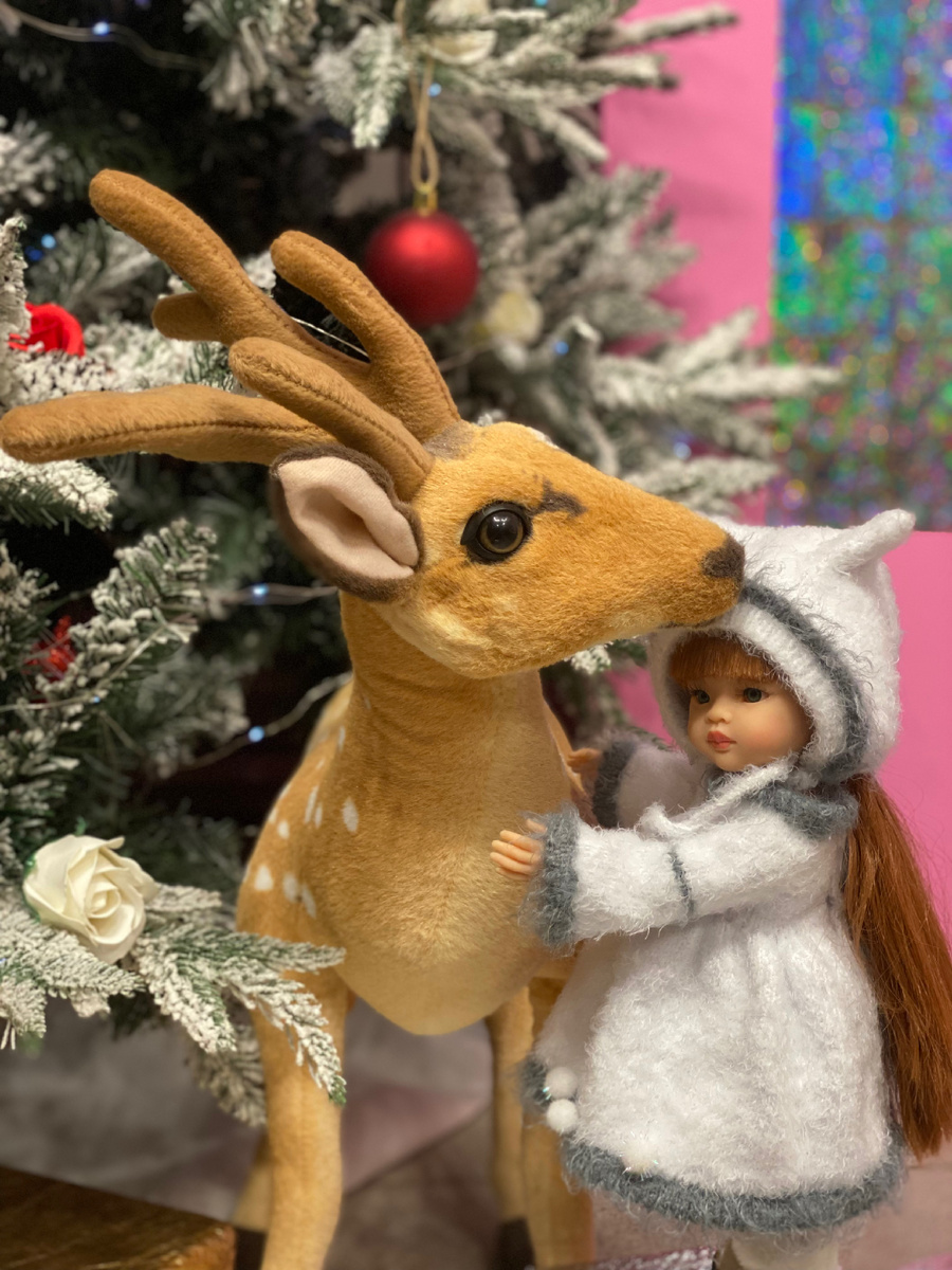 Доброго всем дня!!!😘 Еще одна девочка по имени Айра, моя северная звездочка побывала в новогодней сказке и в зимнем лесу. Погуляла по снежному волшебному лесу и заглянула на огонек к друзьям. А теперь мы хвастаемся новым пушистым нарядом-шапочкой с ушками и шикарным платьем. Платье связано из белых ниточек хлопок-травка от Камтекс и серых Nako Paris.