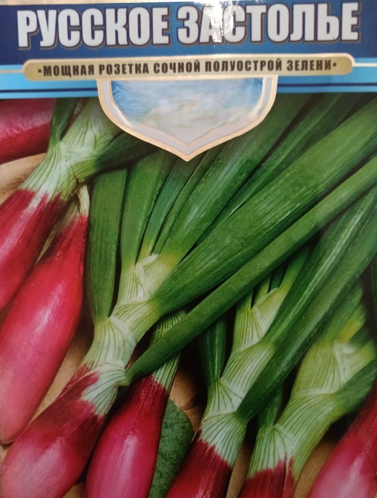 «Русское застолье» — скороспелый продуктивный неприхотливый сорт лука батуна. Быстро формирует утолщённую длинную цилиндрическую луковицу красного цвета с мощной розеткой сочной полуострой зелени.