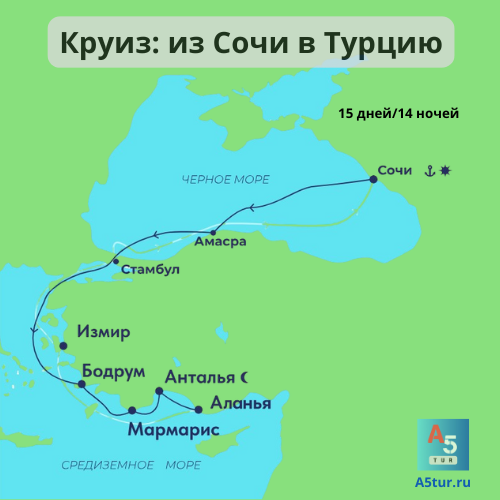 🛳 Даты круиза: с 11 октября по 25 октября 2025 года. Посмотреть цены 🛳 Даты круиза: 29 марта-12 апреля 2025 года Посмотреть цены Погрузитесь в атмосферу роскоши и откройте для себя лучшие уголки Турции! Вас ждет путешествие на борту великолепного лайнера Astoria Grande. Маршрут круиза: Что вас ждет на борту: 🎁 Бонус за раннее бронирование: