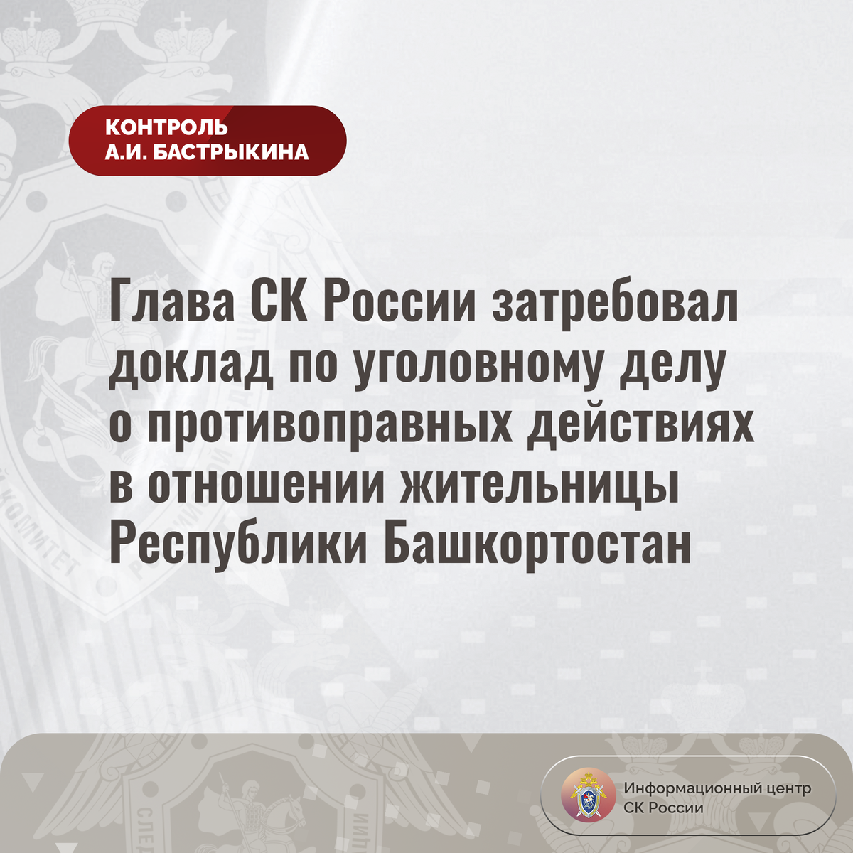 Глава СК России затребовал доклад по уголовному делу о противоправных действиях в отношении жительницы Республики Башкортостан