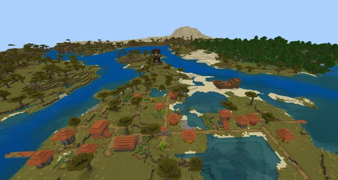 Появление в саванной деревне с кораблём, который на суше. СИД: 9008355401877120259