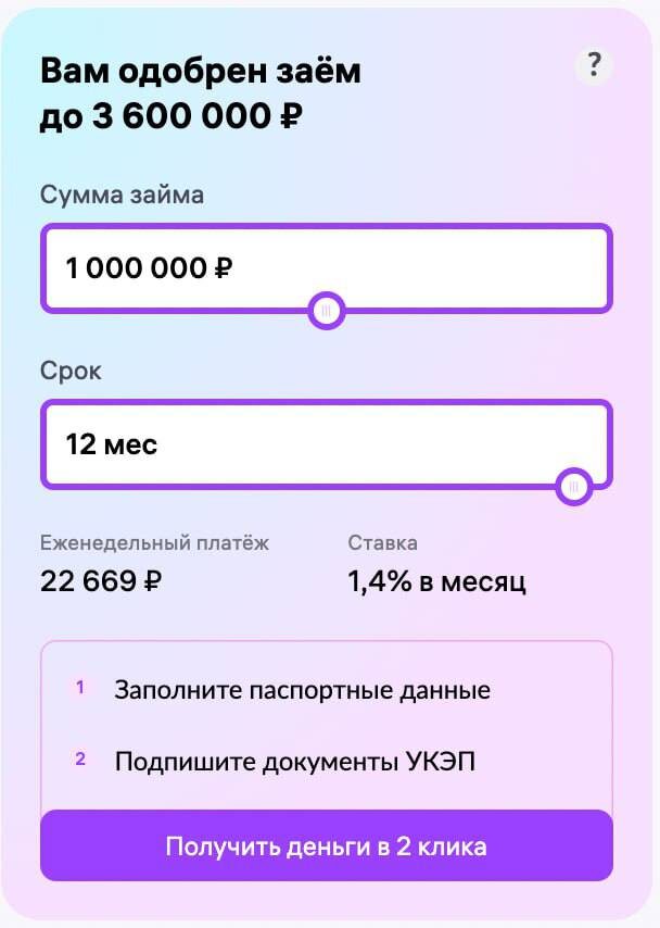 В новом личном кабинете ВБ вынесли кредит в отдельный очень заметный блок, очевидно они хотят качать это направление. Мы задались вопросом: А насколько выгодно вообще брать кредит от ВБ под 1.4% в месяц (+2,5% комиссия за выдачу), в сравнении с другими вариантами: кредит от банка или займ от частных инвесторов? На первый взгляд звучит довольно привлекательно, даже с учетом комиссии: