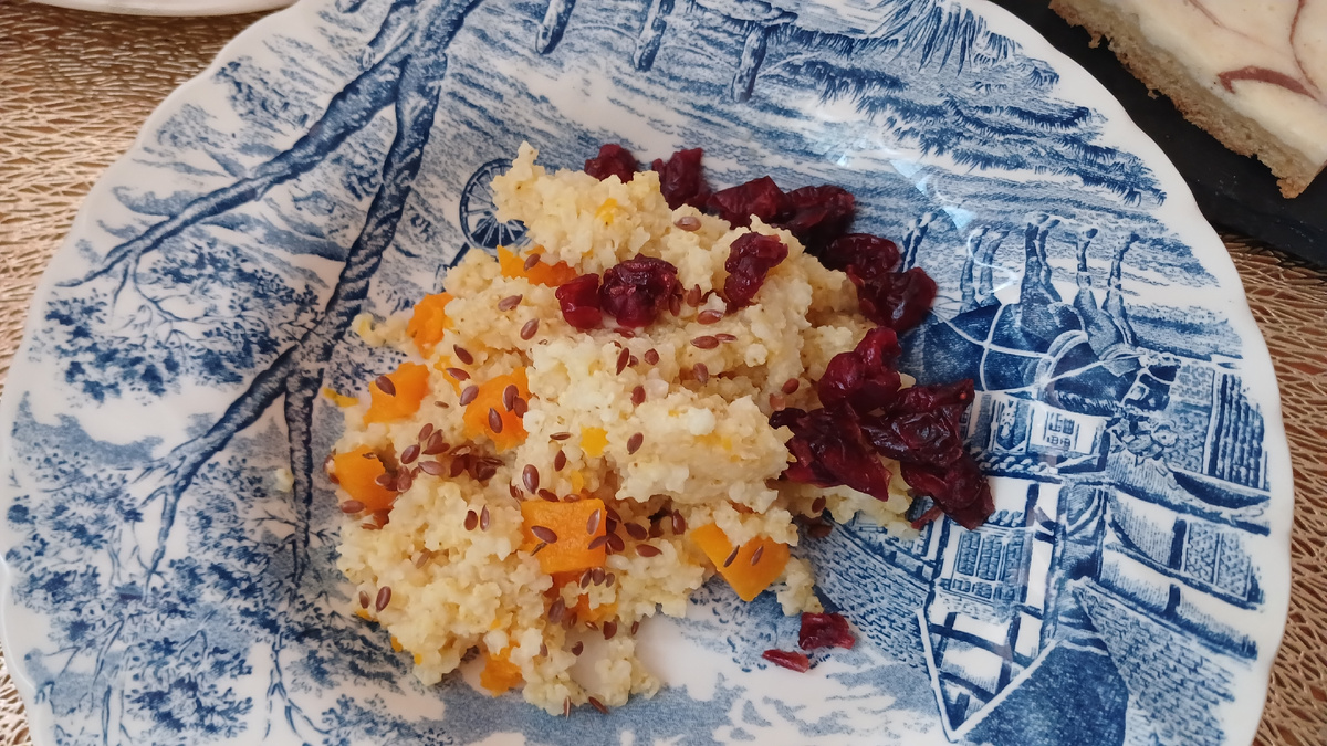 Сварила на завтрак пшенную кашу с тыквой. В тарелки добавила вяленую клюкву и семена льна Сделала брускетты с творожным сыром, помидорами и креветками (все остатки идут в дело!) и к кофе был ленивый чизкейк (пекла его вчера вечером) и вот весь наш завтрак Обед был готов, только все разогрела: суп с гречкой и фрикадельками и ленивый голубец со сметаной и потом снова чашечка кофе с ленивым чизкейком Купила сегодня рыбу и индейку. Индейку сразу и приготовила на ужин. Быстрый рецепт с макаронами и медом и салат пекинская капуста+огурец+кукуруза Меню год назад Ленивый чизкейк