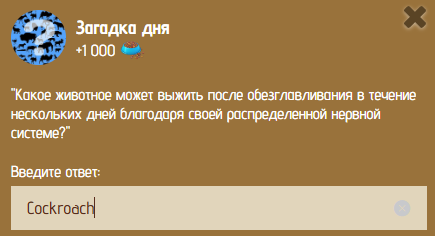 Сегодня 4 января в 19:00 по мск, вышла новая загадка в игре Zoo. Ответ на загадку будет актуален до 18:59 по мск 5 января. Какое животное может выжить после обезглавливания в течение нескольких дней благодаря своей распределенной нервной системе?