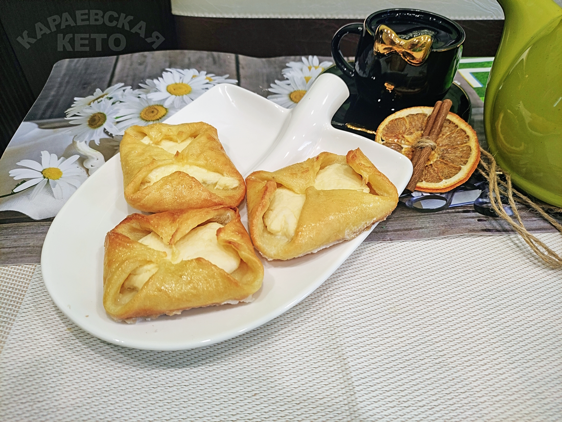 В данном случае начинка из сливочного творожного сыра, но можно и творог. Тесто: