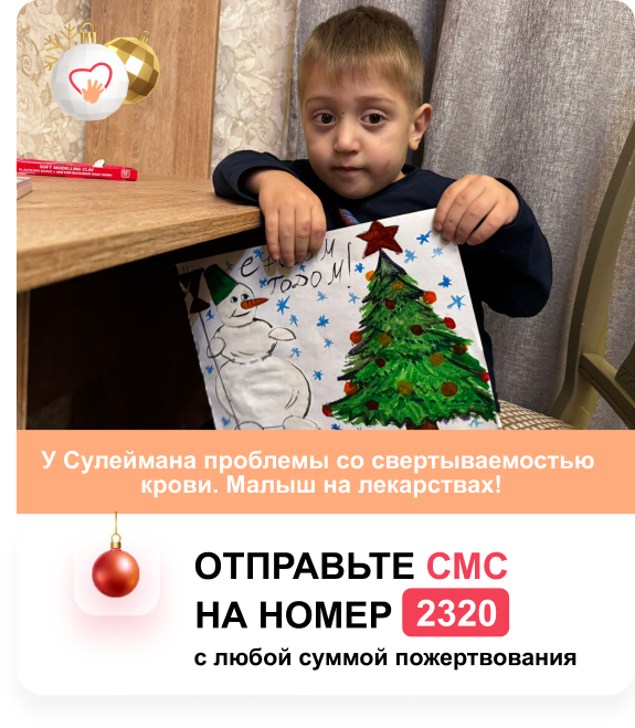 Маленький Сулейман за новогодним весельем может только наблюдать. Его организм работает на пределе, малейшая нагрузка может привести к остановке сердца. Спасти может только операция, но в России её не делают. Начните новый год с доброго дела. Помогите Сулейману починить измученное сердечко! Поздравляем Вас с наступившим 2025 годом! Пусть новый год принесёт вам много счастья, крепкого здоровья, вдохновения. Пусть каждый день станет изобилием добра и чудес! Надеемся, что и в новом году будем вместе спасать детские жизни! Семья Сулеймана встретила 2025 год с огромной надеждой и в то же время тревогой. Сбор идёт медленно, мы рискуем не успеть, состояние малыша ухудшается, он может просто не дожить до спасительной операции. Помогите Сулейману обрести здоровое сердечко! Новый год — самый волшебный праздник, которого с нетерпением ждут и дети, и взрослые. Вот и наш Сулейман радуется со всеми детками наступлению праздников: рисует открытки, учит стишки и любуется ёлкой. Только маме приходится
