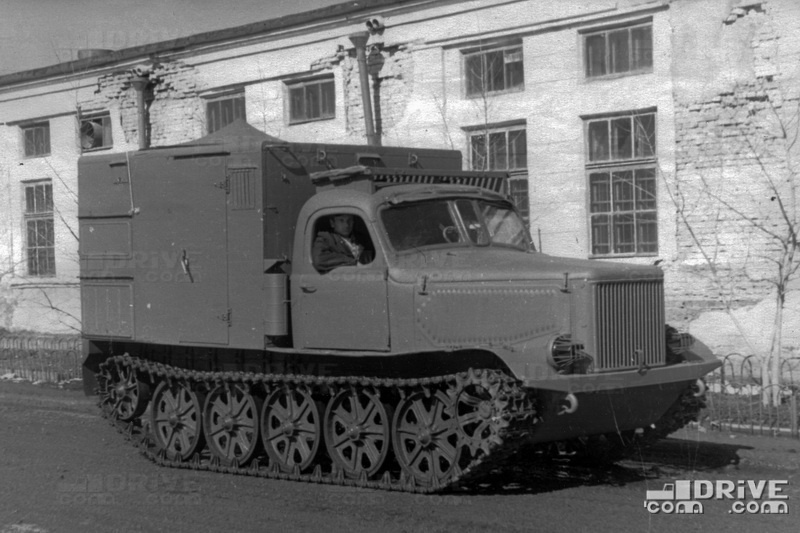 Решил подкинуть немного исторической информации из различных архивов. Вдруг кому-то будет интересно не просто взглянуть на фото, а еще и узнать, что это и для чего предназначалось. На фото – творчество Московского завода специализированных автомобилей (МЗСА). Вездеход именуется «изделие 911Б» и представляет собой металлический фургон, смонтированный на гусеничное шасси ХТЗ-27А и предназначенный для размещения спецаппаратуры и оборудования для последующей эксплуатации в труднодоступной местности. Надстройка представляла собой металлический сварной каркас из специальных профилей, с приваренными и прикрепленными к нему заклепками стальными листами. Наружная обшивка входила в схему силового каркаса, что обеспечивало жесткость конструкции при движении по пересеченной местности. Между внутренней фанерной обшивкой и наружными листами были положены пакеты с теплоизоляционным материалом «АТИМСС». Это позволяло сохранить требуемую для нормальной работы аппаратуры температуру внутри фургона при д