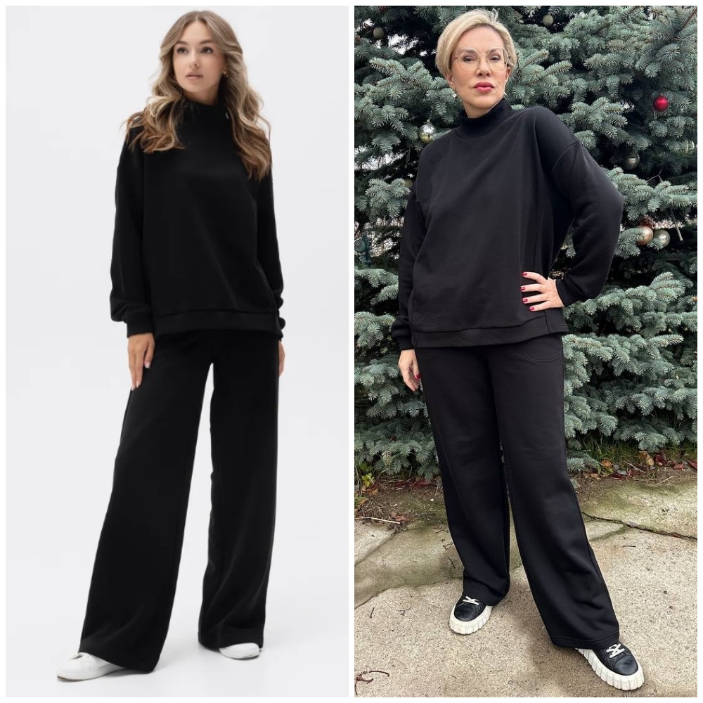 Здравствуйте, дорогие читатели! Меня зовут Ирина, я - стилист, и на этом канале показываю одежду и аксессуары с Wildberries такими, как они есть, то есть, из серии "ожидание/реальность". Мои параметры: рост 169 см, вес 67 кг, 94-74-100 ✅Основной канал: Стильно - не значит дорого! Ставьте лайк в поддержку канала, и давайте смотреть на мою сегодняшнюю покупку. Недавно я заказала себе 2 разных костюма с Wildberries, но от одного бренда, поэтому решила объединить их в одну статью. Оба костюма из качественного плотного трикотажа, с идеальной посадкой, различаются лишь по цвету и оформлению горловины. Удобные прямые брюки и свитшот идеальной длины (я брала на размер больше своего - 52/54), который поможет скрыть животик, бочка и бедра. Костюмы с прекрасным составом, очень приятные тактильно и комфортные в носке. Размерная сетка до 58 размера, цвета есть самые разные. Если вам нужен артикул костюма, ставьте + в комментарии, всем отвечу. Ставим вердикт костюму: ДА или НЕТ?⬇️ Подписывайтесь✅на