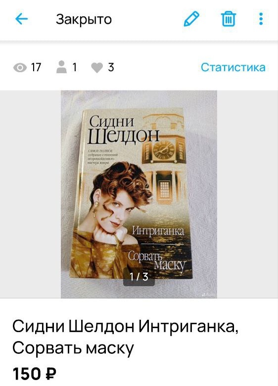 Здравствуйте читатели! Получила сегодня негативный опыт общения с покупателем. Была 😠😡😤 очень злая! Для кого пишу описание книги? Скорее всего для себя. Сделала такой вывод. Когда выставляю на продажу книгу всегда пишу полное описание: какой переплёт, год издания и издательство, сколько страниц, если детская книга, то какие иллюстрации, цветные или черно-белые. Также пишу состояние книги, есть ли какие нибудь надписи. Ладно это была предыстория, а сейчас история продажи. Летом выставила вот такую книгу писателя Сидни Шелдона. В конце декабря состоялась переписка с покупателем. Она спросила состочние книги, ответила что нормальное. Переплёт не порван, страницы все на месте, была прочитала 2-3 раза не более. Отправила перед новогодними праздниками. Сегодня получила оплату за книгу. И следом не очень приятное сообщение. Вот прямо кипела от гнева! Для кого пишу все подробно? Прекрасно знаю, что состочние хорошее, книга из домашней библиотеки. Хранились в сухом помещении. Только н