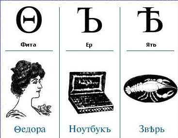 Из азбуки исключались буквы Ѣ (ять), Ѳ (фита), І ("и десятеричное"); вместо них должны были употребляться, соответственно, Е, Ф, И. Вместе с тем, буквы были лишены названий и изменены произношения некоторых из них.