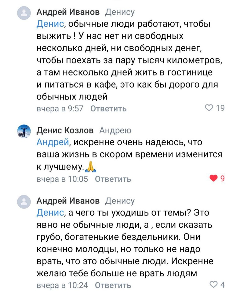 Но комментаторам не нравится, что про других хорошее пишут. Ведь "обычные люди" работают, чтобы выжить, и голодают, и нет у них до Анапы доехать денЯк, а у кого есть - богатенькие бездельники. И вообще они всё врут и пиарятся в интернете.