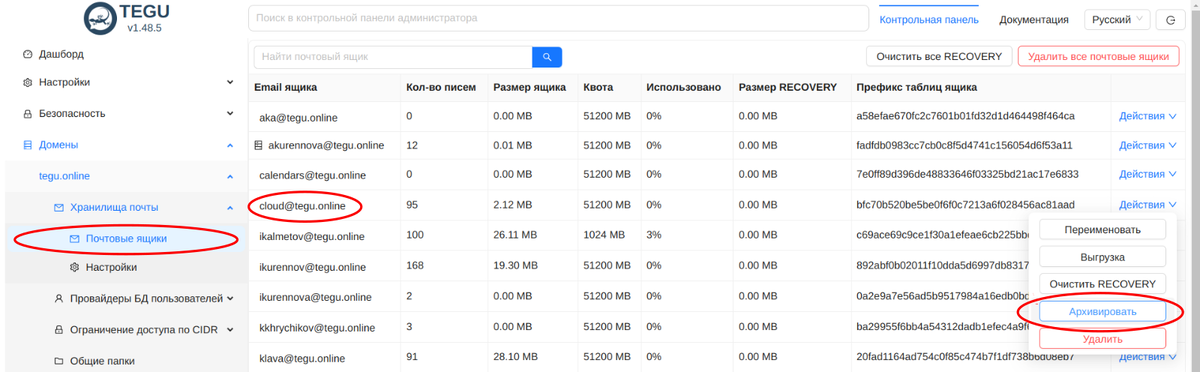 Поэтому в сегодняшнем релизе мы сделали возможность освободить лицензию, не удаляя ящик из базы.