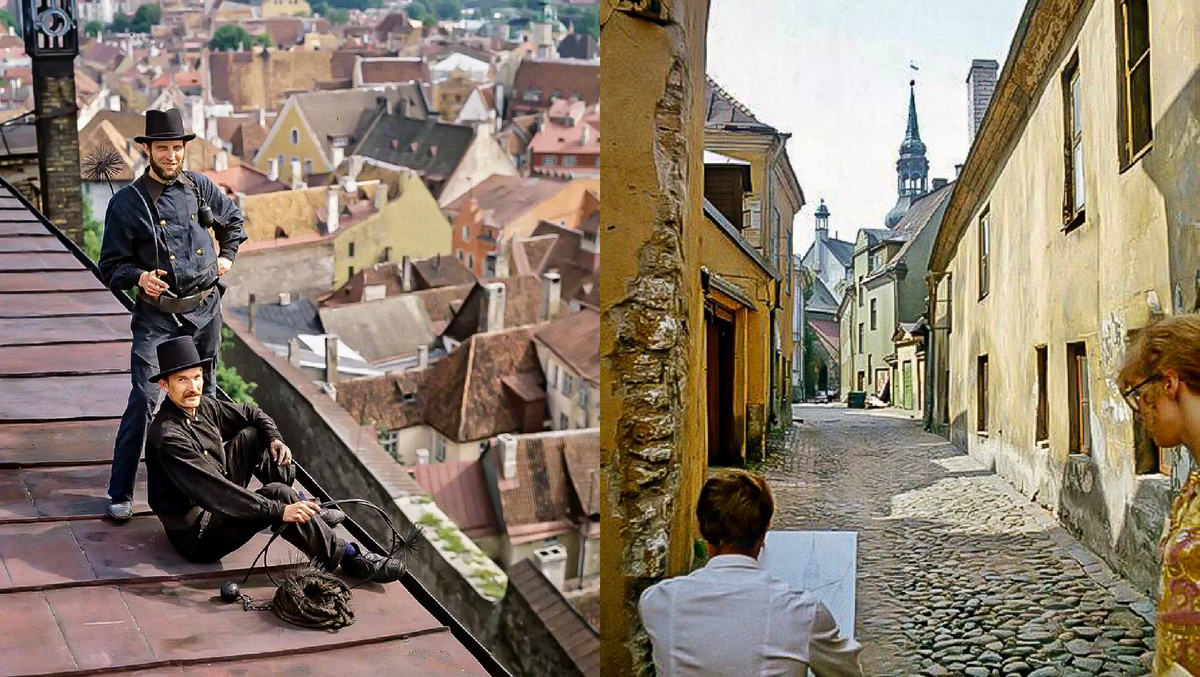 Добрый день, дорогие читатели! Как вы все знаете, в 1940 году в состав СССР вошло сразу 3 прибалтийских республики, включая Эстонию. Во многом, это был один из самых прогрессивных и свободолюбивых уголков всей огромной империи - поэтому сегодня посмотрим на уютный Таллин! 1. Таллин, хоть и маленький, по сравнению с той же Москвой или на крайний случай Ригой, но всё же древний город с невероятно богатой историей, которую по сей день можно лицезреть прямо в местном историческом центре, 1980. 2. Трубочисты на крыше таллинской ратуши, 1984. Обратите внимание, местная архитектура очень похожа на немецкую или средневековую шведскую. Оно и понятно, ведь раньше сий город входил в состав Ганзейского союза - главного торгового объединения Европы от Гамбурга до Новгорода. 3. А вот и колоритные местные черепичные крыши, которые в остальных советских республиках даже и не было нигде, кроме западной части Беларуси и Риги, 1985. 4. А так выглядели предместья тогдашней столицы Эстонской ССР, это