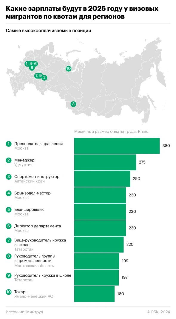 Мигранты готовы к шикарной жизни: зарплаты до 380 тысяч рублей в 2025 году! В мире, где границы становятся всё более условными, а миграционные потоки продолжают бурлить с новой силой, Россия готовится к настоящему экономическому прорыву в политике трудовой миграции. К 2025 году зарплаты мигрантов в отдельных регионах страны достигнут астрономических 380 тысяч рублей в месяц! Такие цифры озвучили в Минтруде, шокировав как местных жителей, так и самих мигрантов. Пирамида доходов: кто и сколько? Для визовых мигрантов, занятых в рамках квот для российских регионов, открывается настоящая дверь в рай. Наибольший доход в 2025 году получат те, кто займет кресло председателя правления в Москве — 380 тысяч рублей в месяц. Эта сумма в несколько раз превышает среднюю зарплату в стране и сопоставима с доходами топ-менеджеров крупнейших корпораций. Следом за председателем правления идут: Далее в списке находятся загадочные профессии вроде брынзодель-мастера, бланшировщика и директора департамента —