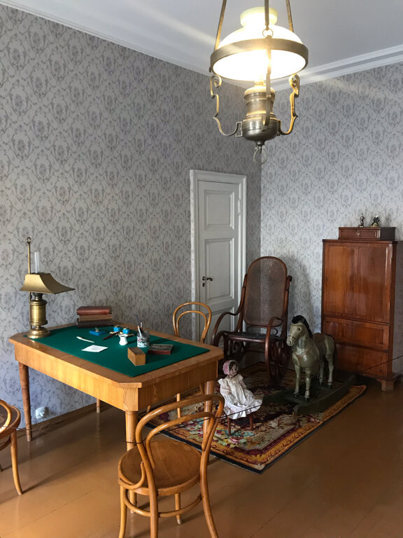 Экспозиция включает мемориальные предметы, фотографии и документы, связанные с жизнью и творчеством писателя.
