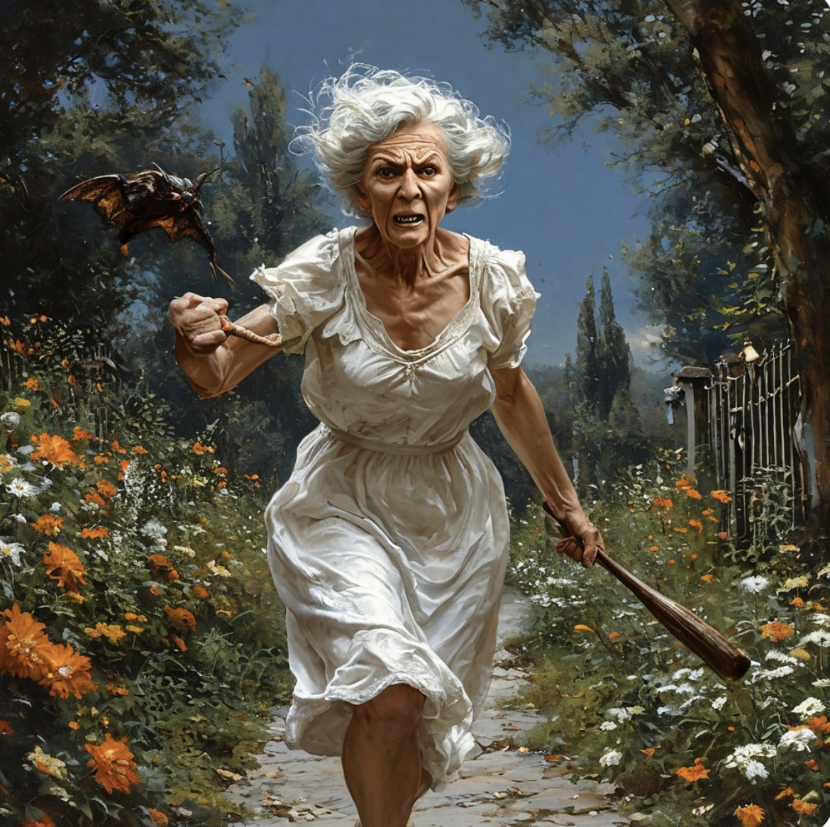 Я в ужасе замерла! Вид мамаши был страшен: глаза горели безумным огнем, лицо перекошено, волосы растрепанны, картину довершали ночная рубашка и бейсбольная бита в ее руках! Через секунду сумасшедшая заорала: