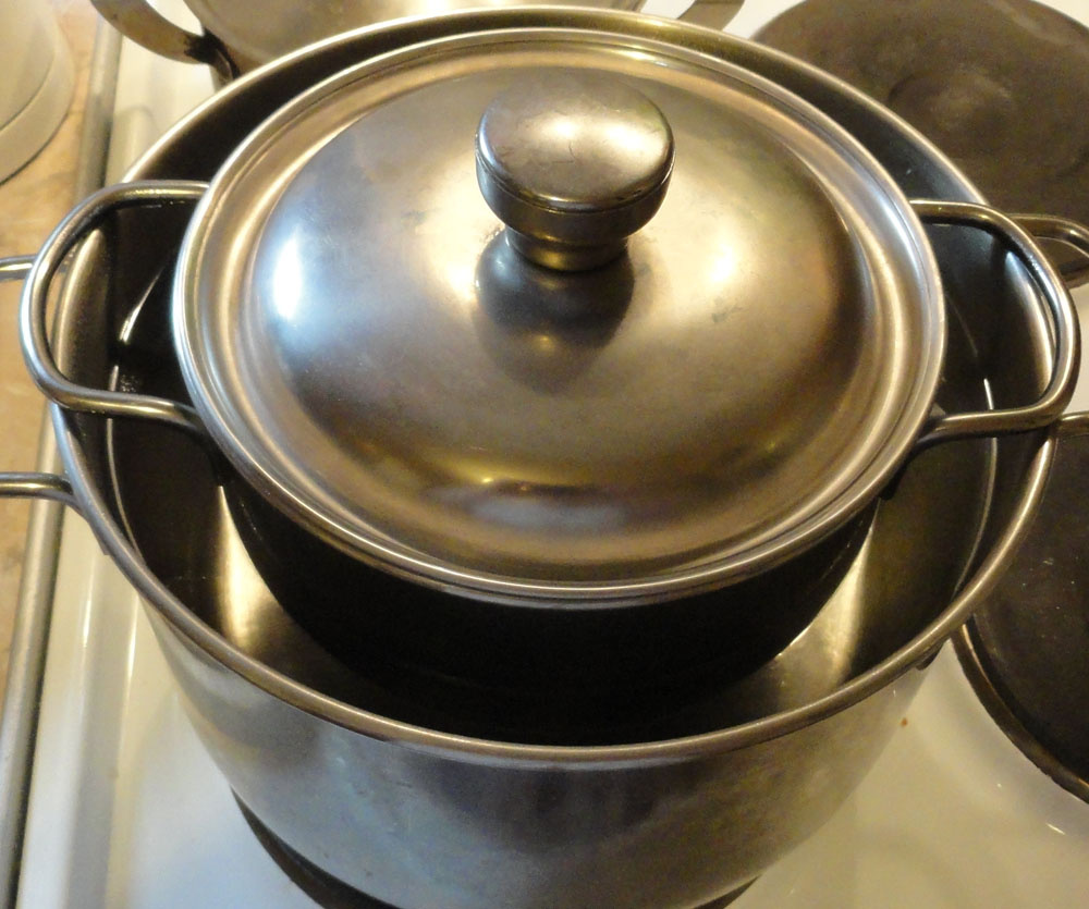 Что такое "нагрев на водяной бане", думаю, знает каждый. Всё очень просто: вы ставите ёмкость с водой на газовую или электрическую плиту, вариант - на печь или даже костёр, и уже непосредственно в эту воду помещаете ёмкость, которую нужно нагреть. Преимущества данного способа очевидны: во-первых, прогревание осуществляется равномерно и со всех сторон, причём одинаковой температурой, то есть тут невозможен вариант "подгорания", а во-вторых, что очень важно, выше 100 градусов всё равно не нагреется. Другое дело - воздушная баня, в которой теплоносителем является не вода, а воздух. Разница здесь в том, что вы ставите на ту же плиту пустую ёмкость, и уже в неё помещаете то, что следует нагреть, но так, чтобы эти два сосуда не соприкасались. Воздух обладает наименьшей теплопроводностью, и переход тепла от горячего воздуха к обогреваемому предмету относительно мал. Однако тут надо следить за температурой, которая может подняться сильно выше 100 градусов, к тому же, возможны локальные перегр