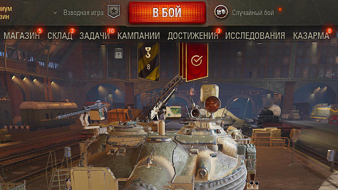 Игра делает большой рывок в будущее и вместе с пачкой этих огнеметов, пулеметов, штурмовых артиллерий, о которых уже не раз было сказано, затесались еще несколько изменений, о которых не упомянули в официальном видео. А они достаточно интересные: Масштаб обновления можно всегда понять по одной вещи: кнопки в бой, которая для игры сакральна и заменяется лишь при самых больших событиях. Это тот случай! Теперь она обретает какую-то текстуру с квадратиками, лампочками внутри, и в целом смотрится более современно: Вместе с ней весь интерфейс стал более серым и прозрачным. Теперь чем-то напоминает всё это мобильную версию танчиков. Чую, кому-то такое не особо понравится и захочется вернуть всё старое, наверняка, это реализуют в модах. Помимо нового ангара, поменяли еще и вкладку стилей, где мы красим танки. Я считаю, сделали её удобнее, техника сейчас будет на черном фоне и получится лучше разглядеть все краски художников: А хитро они придумали, апают ИС-7, которого все давно просили, а в