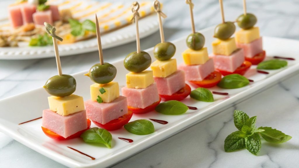 Канапе с ветчиной, сыром и оливками