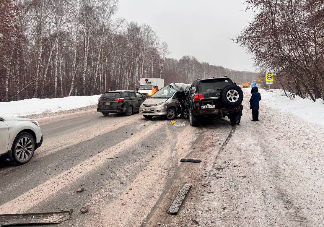 Два легковых автомобиля столкнулись в Октябрьском районе Новосибирска. В результате аварии травмы получили пять человек. Об этом сообщает ГАИ Новосибирска. ДТП произошло 5 января в 10:45 на Гусинобродском тракте. Водитель автомобиля «Тойота Истима» двигался в сторону улицы Зеленодолинской, но не справился с управлением и вылетел на встречку, где врезался в автомобиль «Тойота Ленд Крузер Прадо». На кадрах с видеорегистратора другого автомобиля видно, как Истим занесло на сколькой дороге. Водитель пытался вывернуть руль, но автомобиль вылетел на другую полосу. Удар пришелся на боковую часть со стороны водителя. Он и еще четыре пассажира доставлены в больницу. Накануне в Искитимском районе произошло лобое столкновение отечественного автомобиля с двумя иномарками. Один человек погиб. Анастасия Новоселова