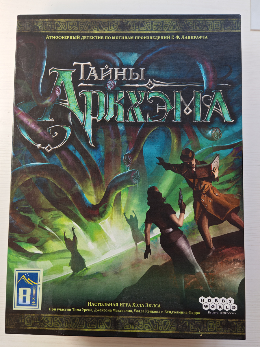 Издательство: Hobby World Кол-во игроков: 1-8 Возраст: 13+ Время: 60-90 мин Состав игры: Карта Аркхэма, правила игры, книга расследования, адресная книга, 8 газет, 12 карт допуска, счетчик времени и два жетона, лист союзников Жанр: детектив Действия игры происходят в городе Аркхэм, штат Массачусетс в мире Говарда Филлипса Лавкрафта. Силы зла с давних времен ведут охоту, выбирая в жертвы слабых, неспособных сопротивляться темному зову. Профессор Генри Армитедж, заведующий библиотекой Орна при Мискатоникском университете, просит нас расследовать серию загадочных событий. Сможем ли мы найти рациональное объяснение или потеряем рассудок? Это моя первая игра в жанре детектива. Я еще еще не знала о существовании игр про Шерлока Холмса, да и вообще о жанре детективных настолок. О самом Лавкрафте тоже только слышала и его книг не читала, а тут сразу и детектив и загадочный мир с древними ужасами. Это атмосферная книга-игра, которая меня зацепила историями, загадками, иллюстрациями. Расследу