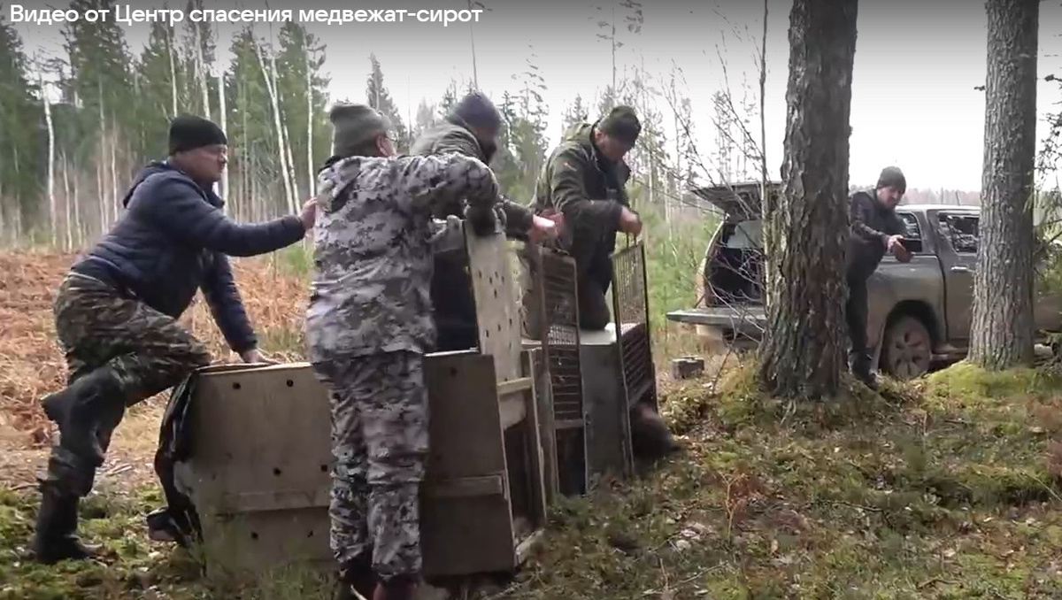 Биологи тверского центра опубликовали видео выпусков 11 медвежат в дикую природу