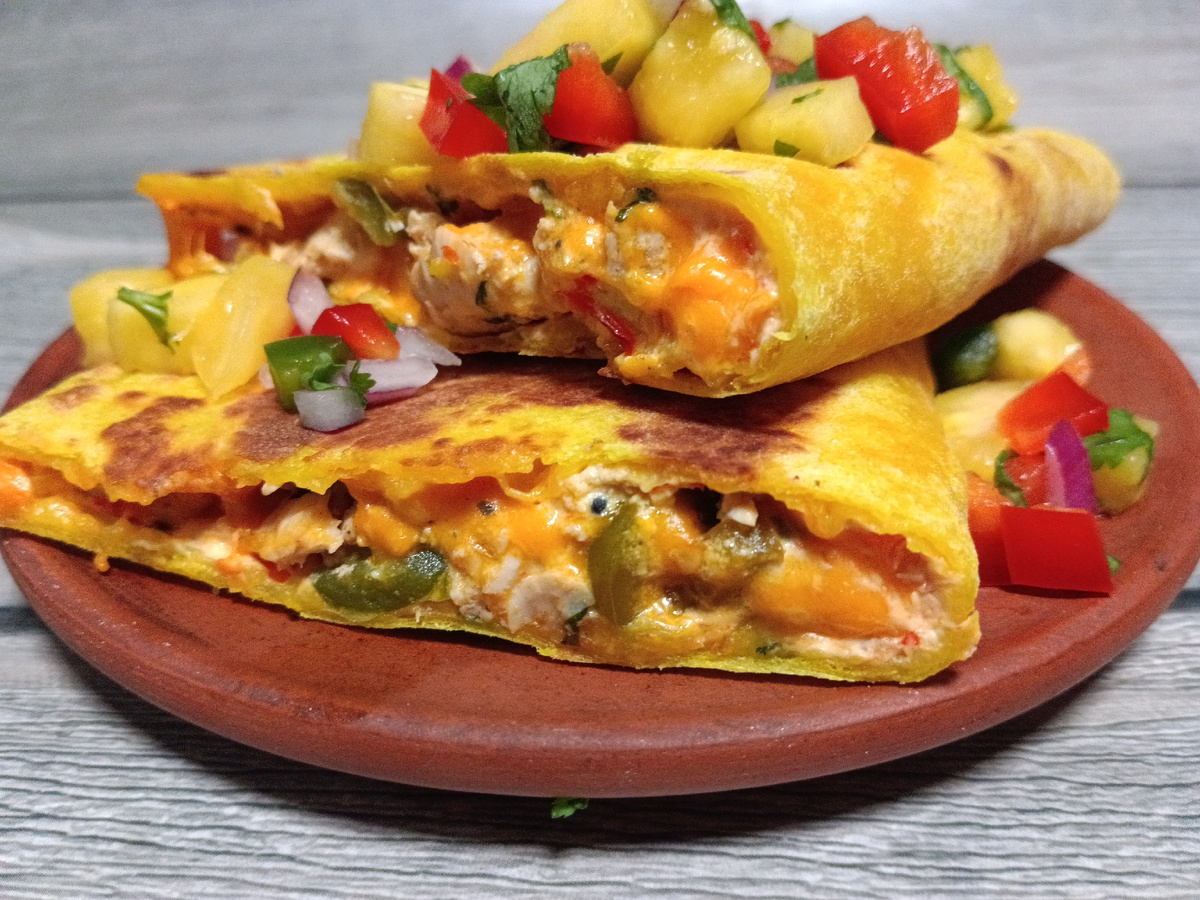 Кесадилья с курицей тандури и ананасовой сальсой - это вкуснейшее блюдо, которое понравится всем любителям мексиканской кухни.
