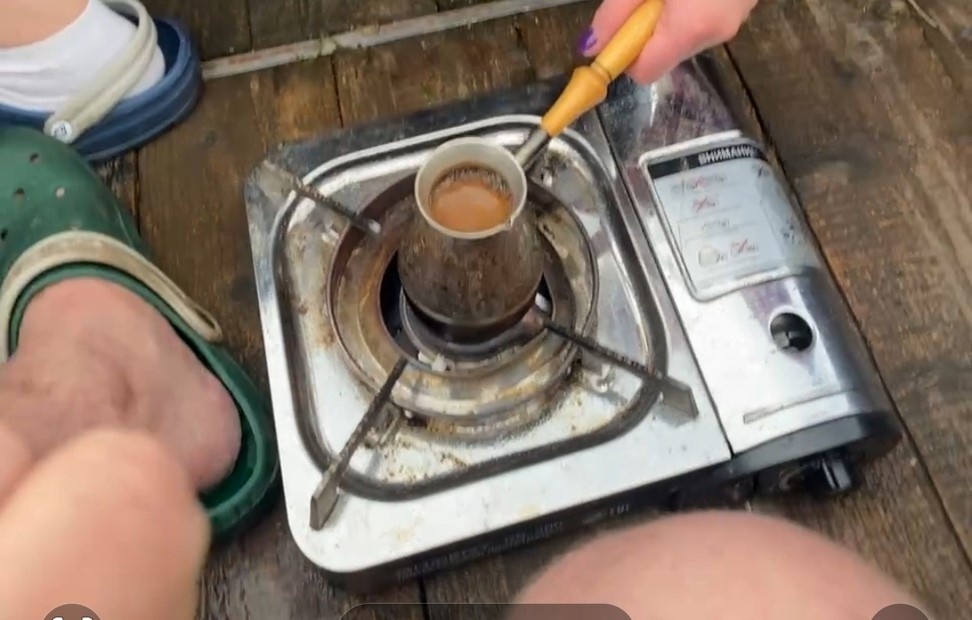 А ещё, если мы едем на пикник, то берем горелку и турку.