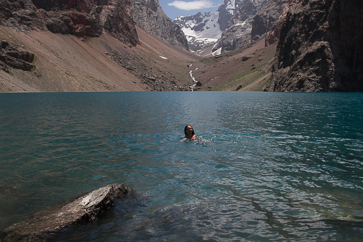 Напомню, что мы спускаемся с перевала Чимтарга. Сброс высоты 1600 метров. Наша цель на сегодня оз. Большое Алло (3150 метров). Здесь мы останемся на две ночи. Это очень красивое местечко!!! Нам повезло, кроме нас здесь было всего несколько человек, но их не видно и не слышно ) Про озеро Большое Алло, и о том, как мы провели здесь время, я расскажу в следующей статье. Это озеро заслуживает отдельной истории!!! День был довольно сложный. Шли много и долго. И я, как обычно, не смогла удержаться, чтобы не нырнуть в озеро ) Вода холодная, но уже не ледяная, и очень освежает после долгого перехода! У меня наконец-то проснулся аппетит! На седьмой день хождения по горам )) Впервые за все эти дни я легко все ела, и хотелось добавки ) До этого я скорее заставляла себя поесть, потому что понимала, что нужны силы и энергия. Пришло время рассказать о нашей продуктовой раскладке. Поскольку мероприятие у нас очень энергозатратное, нам требуется хорошее сбалансированное питание. Какие обычно в пох