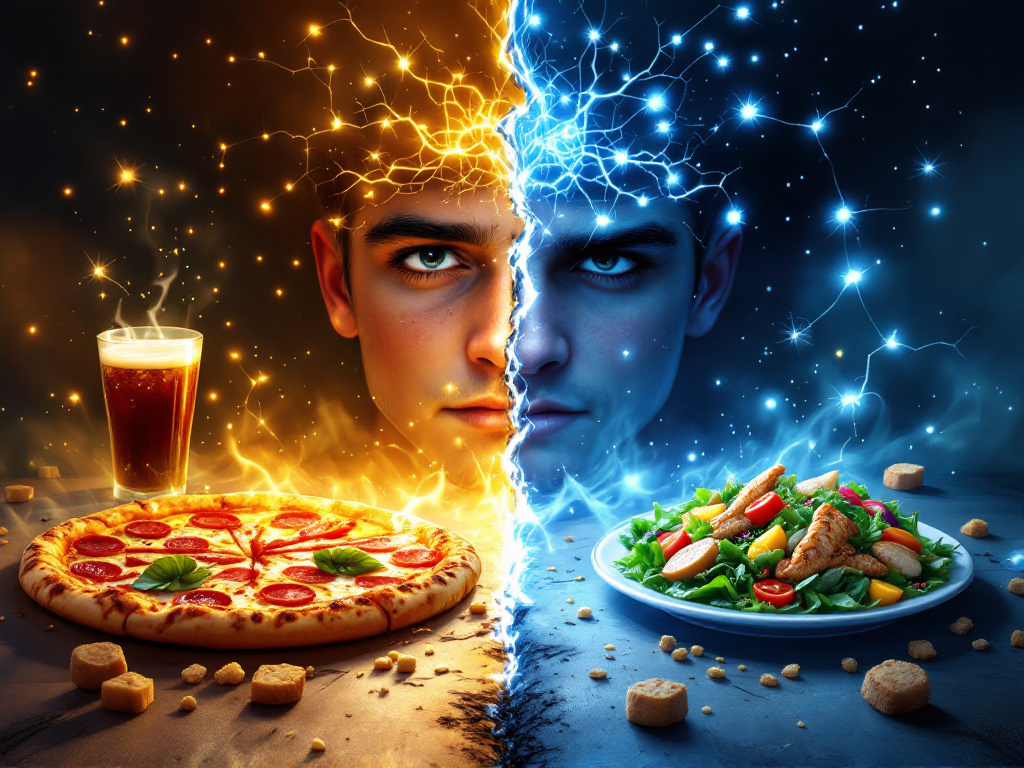 Признайтесь, это случалось с каждым: вы твёрдо решили питаться правильно, составили идеальный план... и вот уже через час сидите с пакетом чипсов перед телевизором. Как это произошло? Почему наш мозг предаёт нас в самый ответственный момент? Спойлер: всё гораздо сложнее, чем просто отсутствие силы воли! 🤯 Учёные были В ШОКЕ, когда увидели, что происходит в нашем мозге при виде вредной еды! Оказывается, наш древний мозг запрограммирован на выживание по правилам каменного века. И вот что он вытворяет с нашим сознанием: 🎯 Мгновенно активирует центр удовольствия при виде калорийной пищи