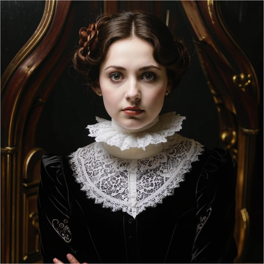 Екатерина Ивановна вновь открыла свой шкаф. В театр нельзя идти в халате, даже если он очень красив и сшит из атласа, отливающего разными цветами. Женщина доставала то один наряд, то другой, а потом, взглянув на девушку, возвращала их на место. Наконец, она остановилась на черном бархатном платье, которое надевала по праздникам лет двадцать назад. Платье давно уже стало тесным своей хозяйке, но Екатерина Ивановна отчего-то не рассталась с ним. Воротник был тонкой работы, соткан из белых кружев.