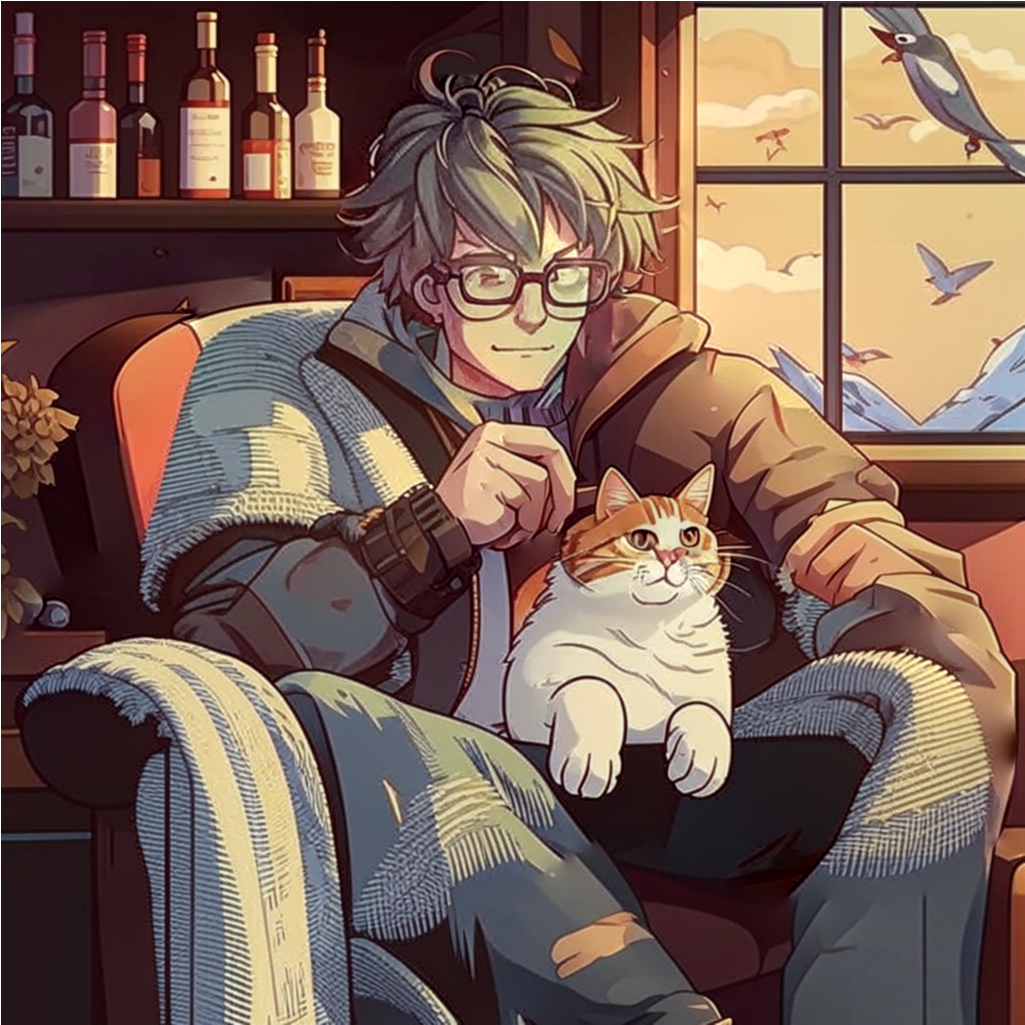 Петя с котом замёрзли. Попав в бар, котик быстро нашёл тёплый уголок, свернулся клубком на пледе в кресле и накрылся пушистыми крыльями. Петя же уселся возле камина и смотрел издалека, как дух Севера готовит согревающий напиток — пунш.