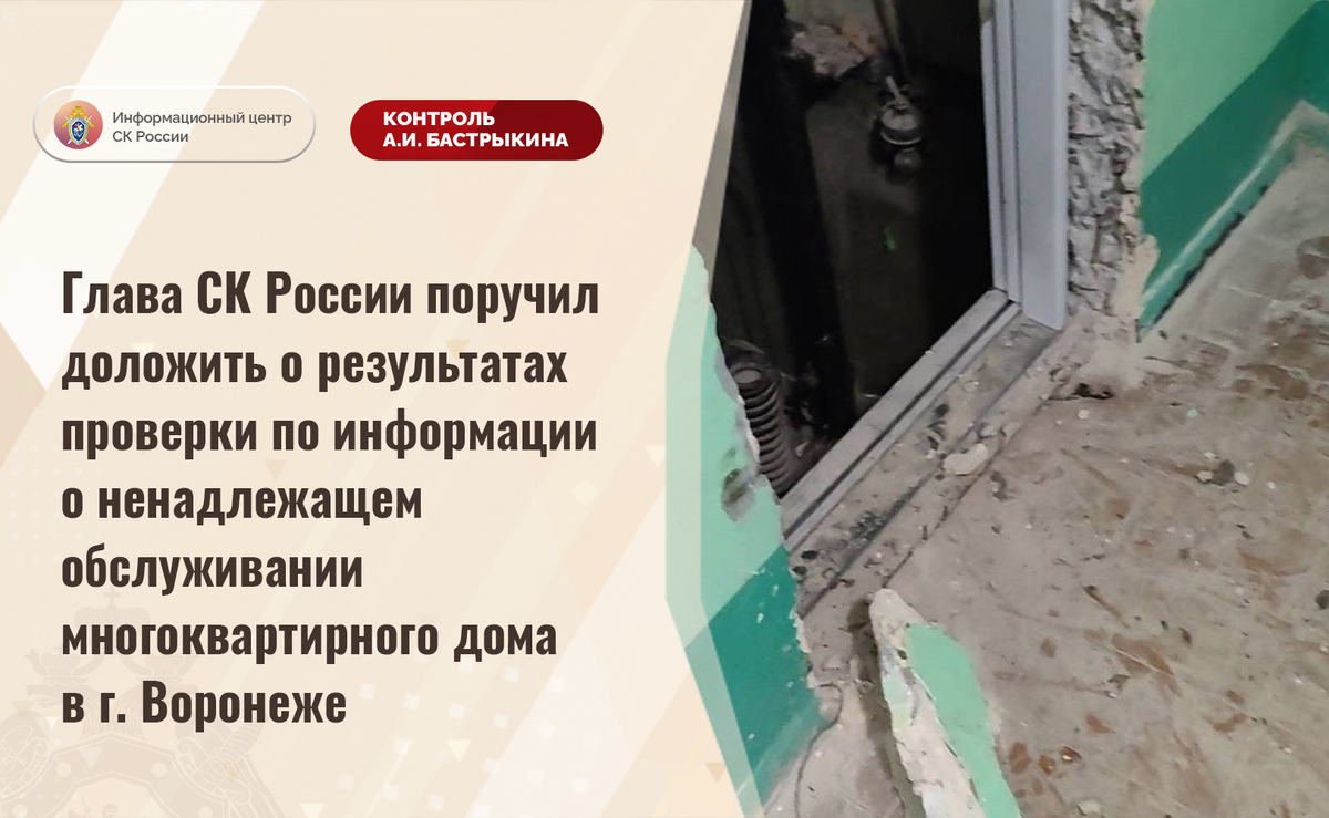 Глава СК России поручил доложить о результатах проверки по информации о ненадлежащем обслуживании многоквартирного дома в г. Воронеже