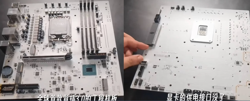 Команда DIY-APE, совместно работающая с известными брендами, такими как Asus и MaxSun, представила инновационную технологию BTF 3.0 для настольных компьютеров. Эта новая система позволяет подключать все основные компоненты ПК через единый 50-контактный разъём на системной плате. Это означает, что для подачи энергии на материнскую плату, процессор и видеокарту теперь достаточно одного кабеля. Особенностью прототипа новой системной платы является наличие упомянутого разъёма, который способен передавать до 1500 Вт мощности. Это избавляет от необходимости использовать отдельные кабели для каждого компонента, включая видеокарты. Однако стоит отметить, что новая система пока поддерживает только видеокарты с разъёмом GC-HPWR, которые на данный момент выпускает в основном Asus. На задней стороне платы также расположены пара разъёмов для подключения SATA-накопителей, хотя их использование в современных настольных компьютерах становится всё менее распространённым. Благодаря этому, в большинстве
