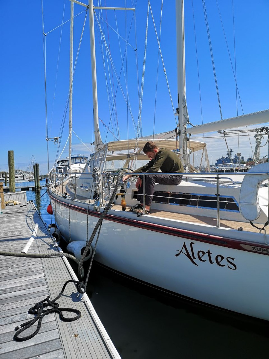 Нам предстояло провести здесь три недели и успеть за это время проверить, а если надо, то и починить все системы яхты, такелаж, паруса, маленькую надувную лодку, её подвесной мотор; закупиться провизией, запчастями, лекарствами и сделать много всяких мелочей для подготовки к переходу на Бермудские острова. А ещё нам надо было продать машину, оформить выезд из страны, сделать заявку и оплатить пошлину для посещения Бермуд. В общем, дел было невпроворот.