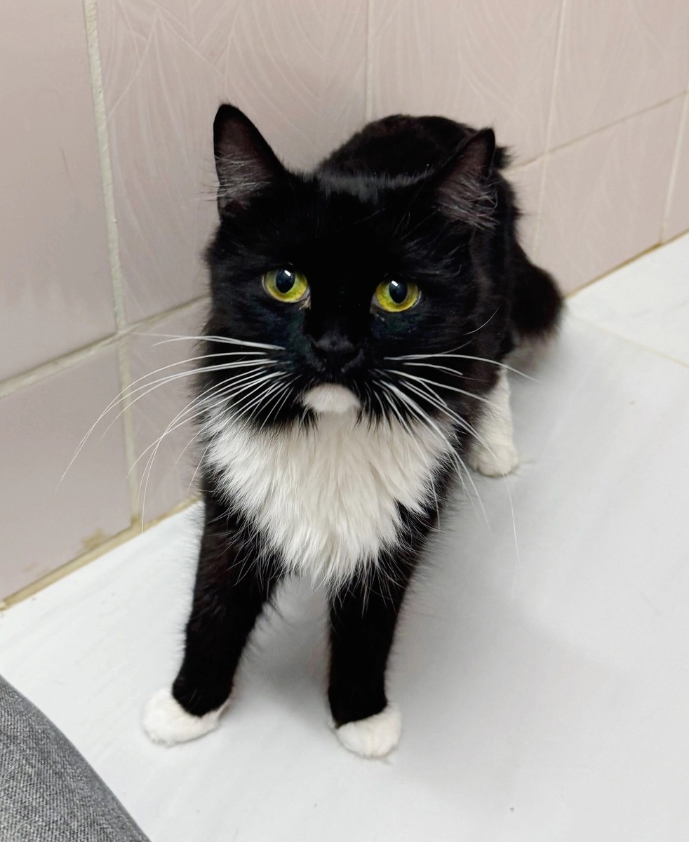 С большой радостью приветствуем вас, уважаемые читатели нашего доброго канала🖐! Сегодня нам хочется познакомить вас с очаровательной кошечкой по кличке Евгешка. Малышка была простой уличной кошкой в п. Ермаково. Скиталась, побиралась, пока не встретила добрых людей, которые и помогли ей обрести временный дом в приюте. Но это не дом...😿 Первое время она стрессовала, на всех шипела, но агрессию никогда не проявляла. Девчонка совсем молоденькая. Была стерилизована, из чего делаем вывод, что ее, возможно, бросили. Евгешка очень красивая кошечка с очень правильным окрасом шубки: вся черная, только манишка и носочки белые. За время жизни в приюте (к нам она приехала в мае 2024 года) прошла все обработки, сделаны прививки. Шикарные усищи, Зеленые глазищи, Шубка с длинным ворсом, Обращаюсь я с вопросом: «Где родной мой человек? Жду тебя, но короток мой век. Приходи скорей ко мне в приют. Счастье и любовь я подарю". В преддверии Рождества Христова, этого светлого праздника, нам хочется верить